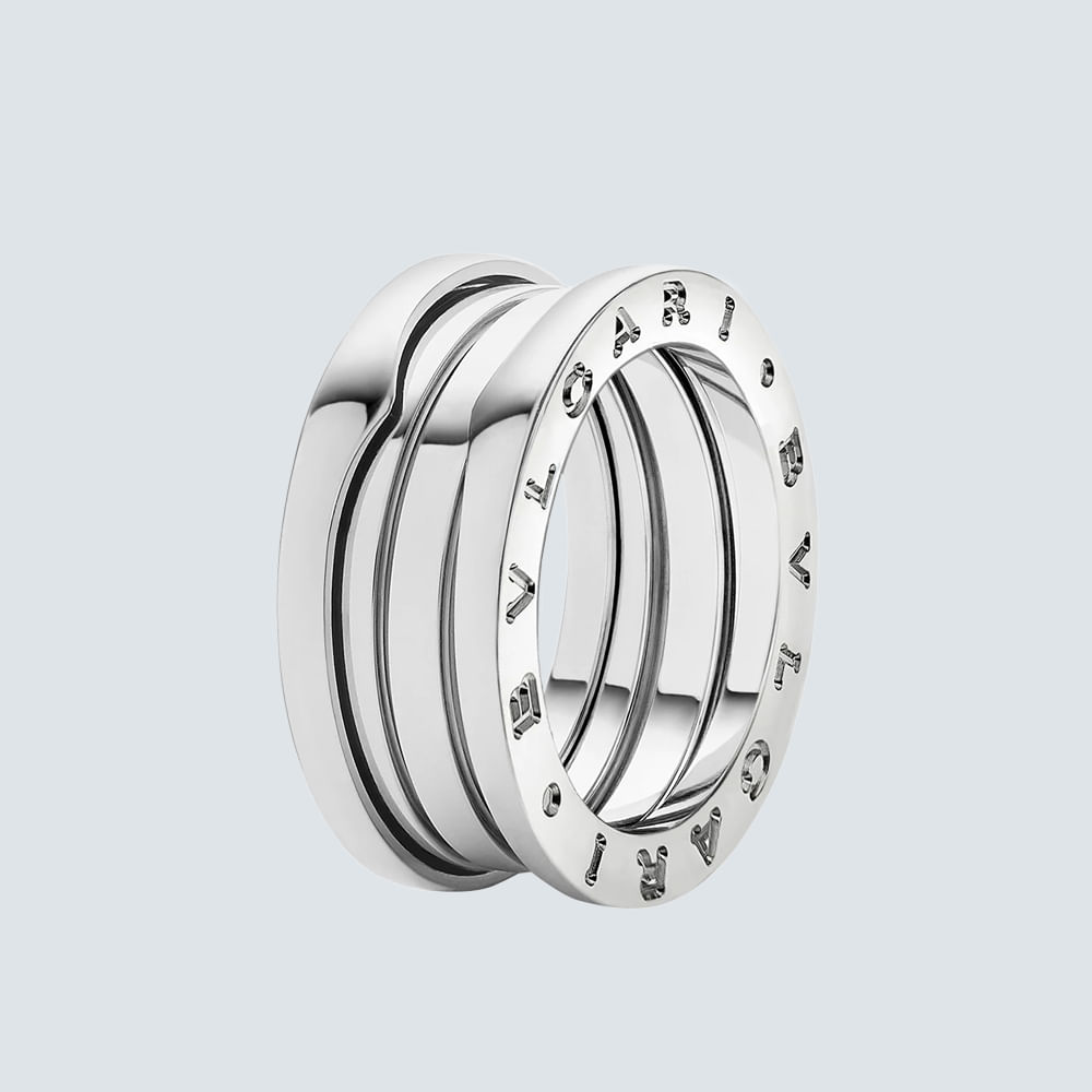 Inspirándose en el anfiteatro más famoso del mundo, el Coliseo, el anillo B.zero1 es toda una declaración de la visión creativa de Bulgari, que reta la esencia misma del diseño joyero. La pureza de su distintiva espiral es una metáfora de la armonía entre pasado, presente y futuro, reflejo de la majestuosidad de la Ciudad Eterna, y el emblema del espíritu vanguardista de la colección. Anillo B.zero1 de tres bandas en oro blanco de 18 qt.