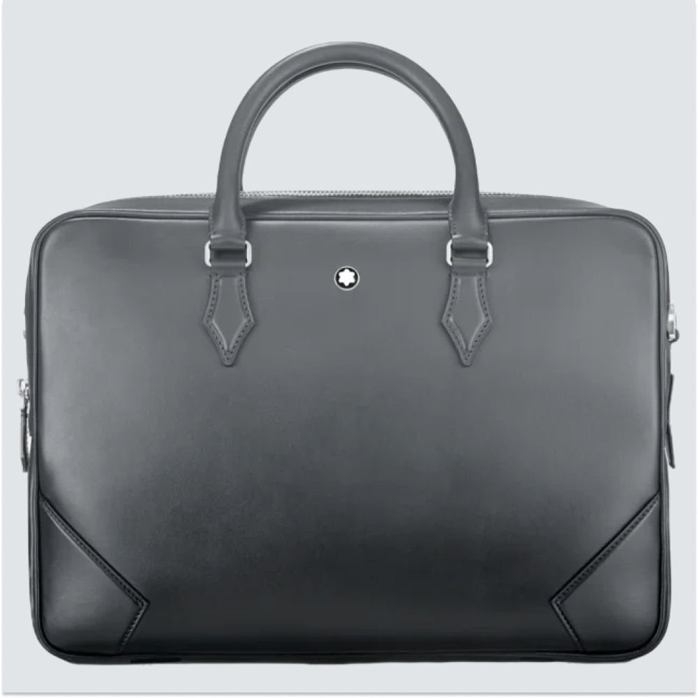 Inspirado en la cultura de la escritura, el portadocumentos Meisterstück es un compañero elegante para viajes de negocios. Elaborado a partir de un nuevo cuero negro de brillo profundo, todos sus detalles hablan el lenguaje de la pluma: costuras, tiradores de cremallera, manijas recuerdan la forma de la pluma, la esencia de Montblanc. Una versión más grande del logotipo ilumina la bolsa. Las asas superiores de piel, la bandolera de piel extraíble y el sistema satélite ofrecen múltiples opciones de transporte, mientras que los bolsillos interiores garantizan la practicidad.